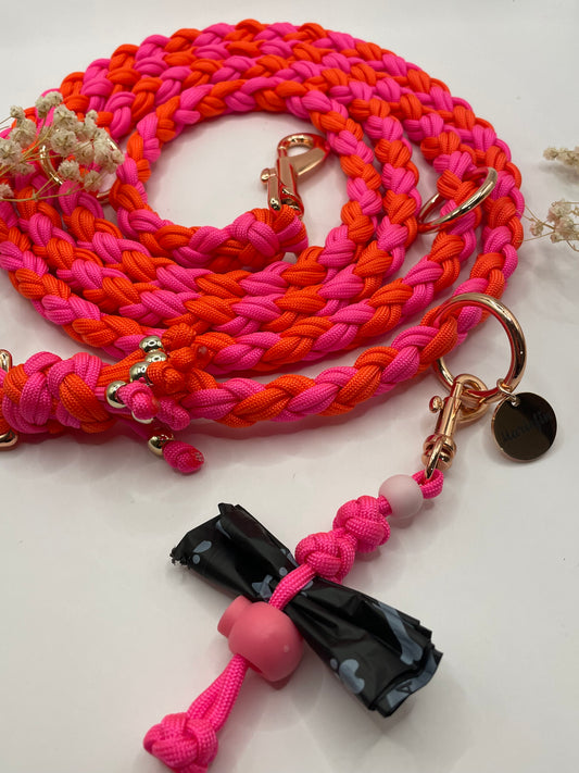 Doppelt geflochtene Leine mit Kotbeutelhalter -2m-