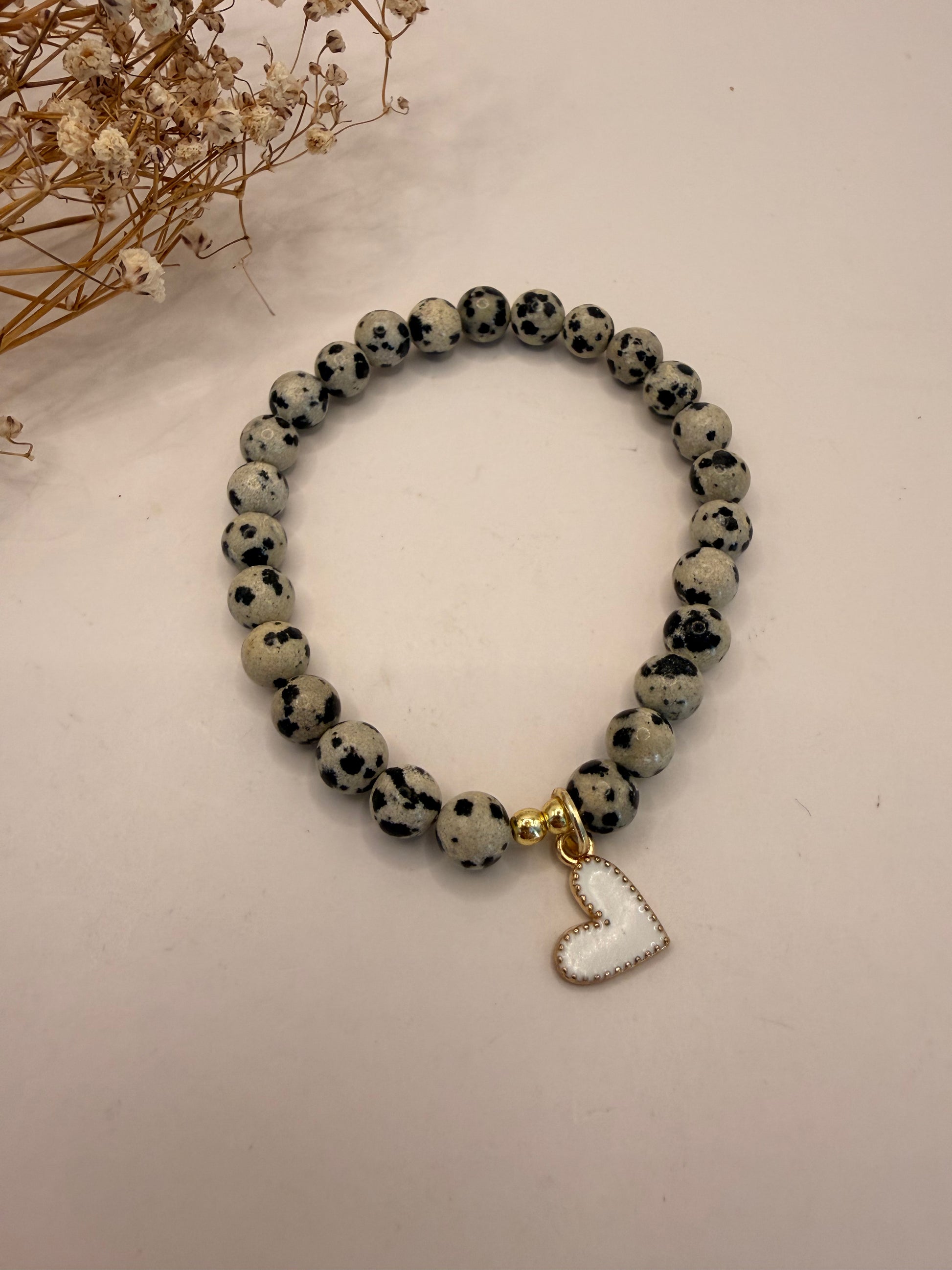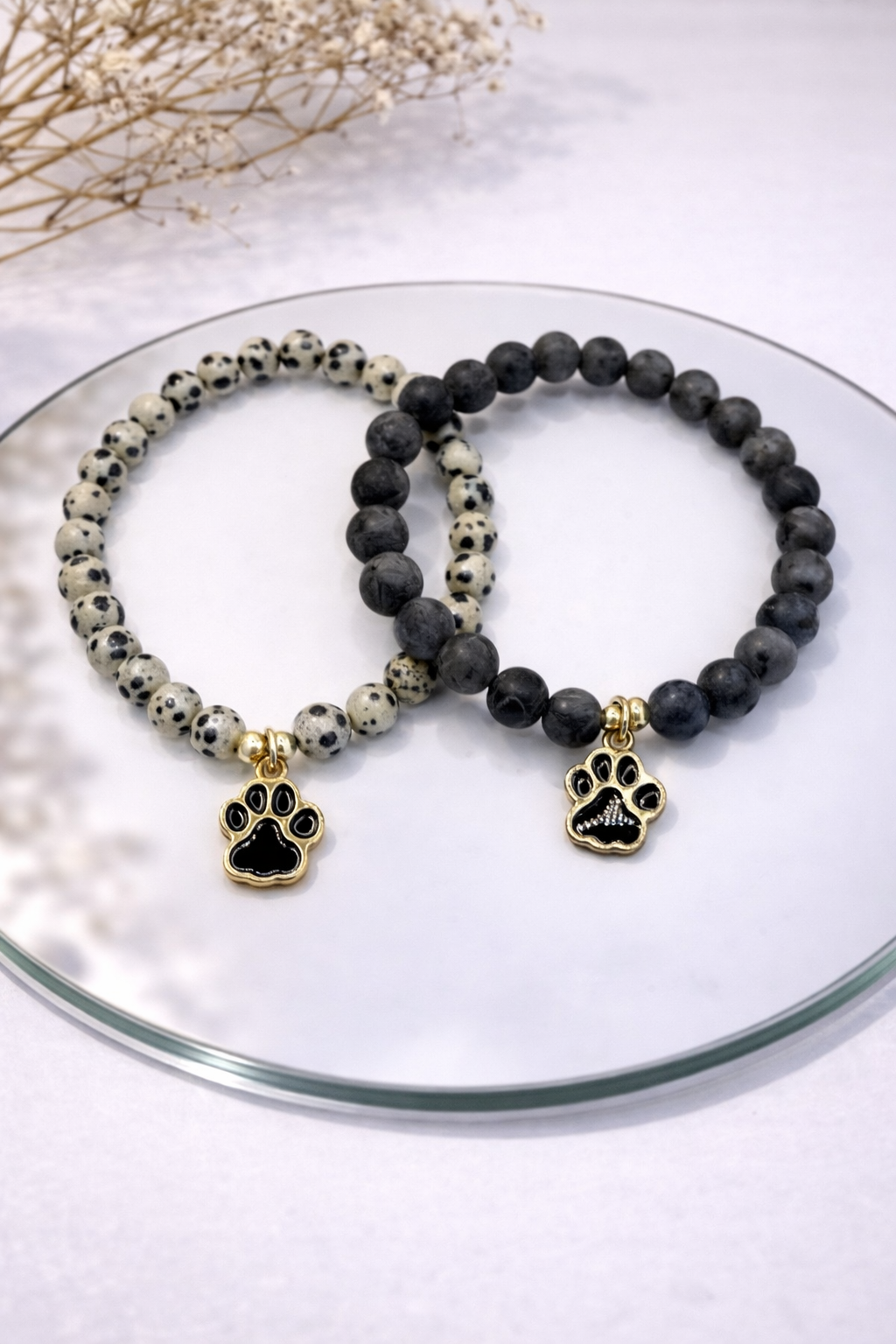 Die Perlen in Schwarz und gepunktet stehen für Stärke, Reinheit und den Neuanfang. Der kleine Pfotenanhänger erinnert daran, dass jedes Leben zählt – und dass Hilfe dort beginnt, wo wir nicht wegsehen.