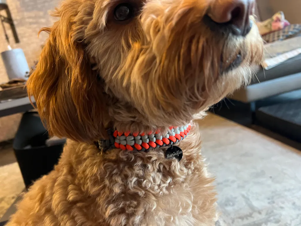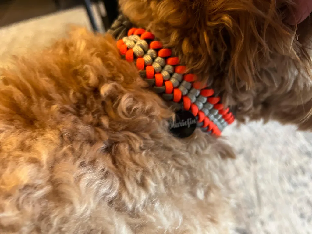 Das Halsband und die Leine sind so schön. Dieses Muster hat uns sofort angesprochen. Wir legen sehr viel Wert auf Handarbeiten, denn das steht meistens für Qualität und liebevolle Detailarbeit. Wir können Mariefin nur weiterempfehlen! Die Farbauswahl ist der Hammer :-)